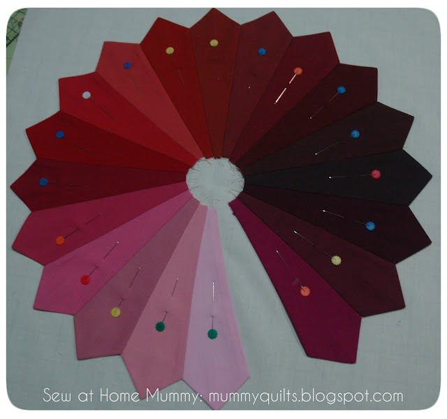 Tip: when you lay your Dresden out on your background, secure it with a lot of pins so it doesn't shift while you're sewing it in place.